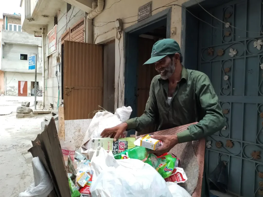Fortunately, Shabaz Masih’s life improved significantly when he joined the PMS Solid Waste Management (SWM) project as an E-guard, which covered not only his household but also his wife’s treatment expenses. Through this role, he found financial stability and renewed sense of purpose. He charges 300 rupees per house to support his loved ones and sells scrap for extra earnings. He is contributing well towards the community ensuring a cleaner environment for future generations.