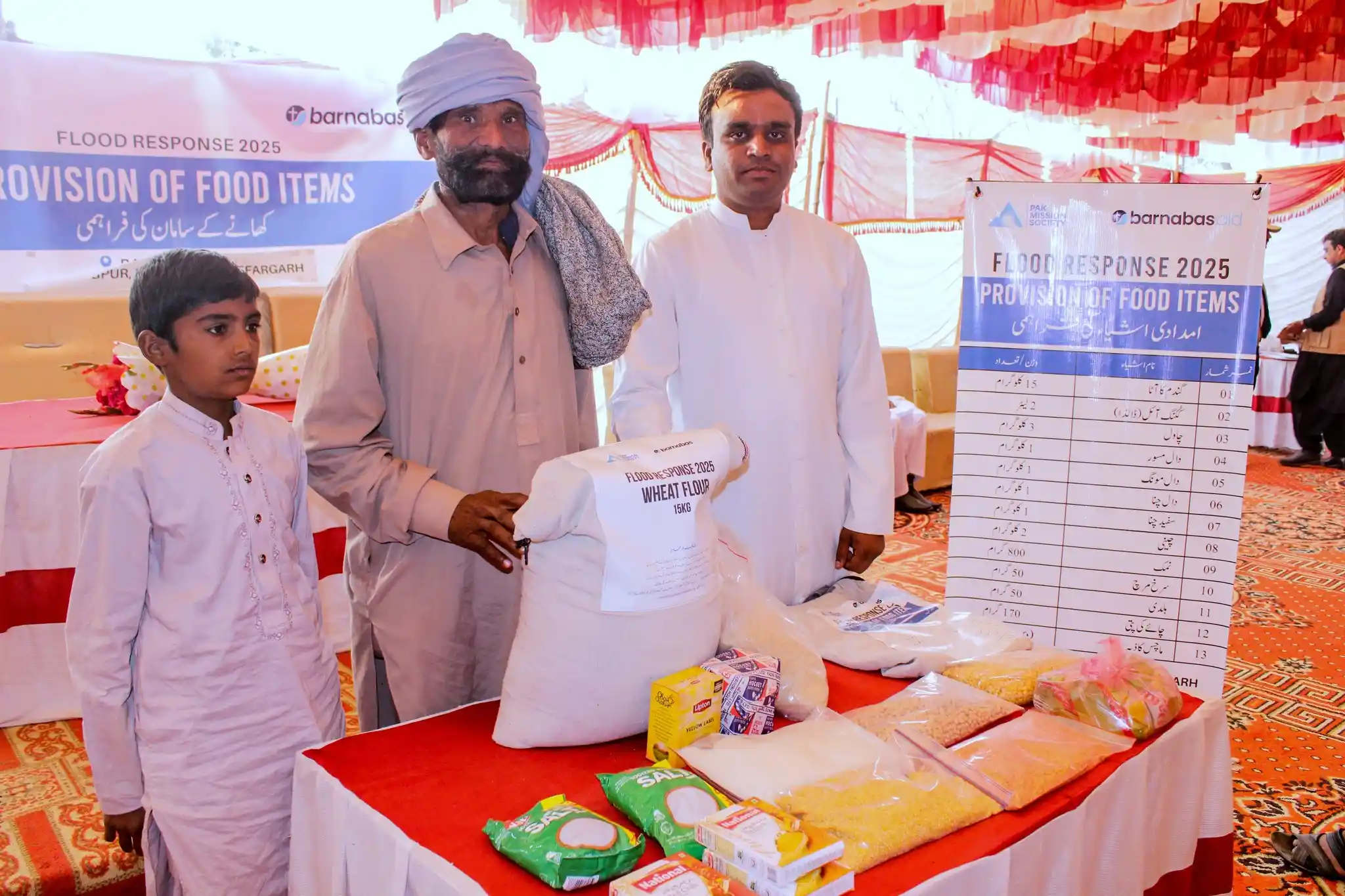 With the generous support of Barnabas Aid – International, Pak Mission Society provided 300 food packages to flood-affected households in Rangpur, District Muzaffargarh, helping families meet their immediate nutritional needs. This initiative aims to deliver a total of 900 food packages to 417 vulnerable households.