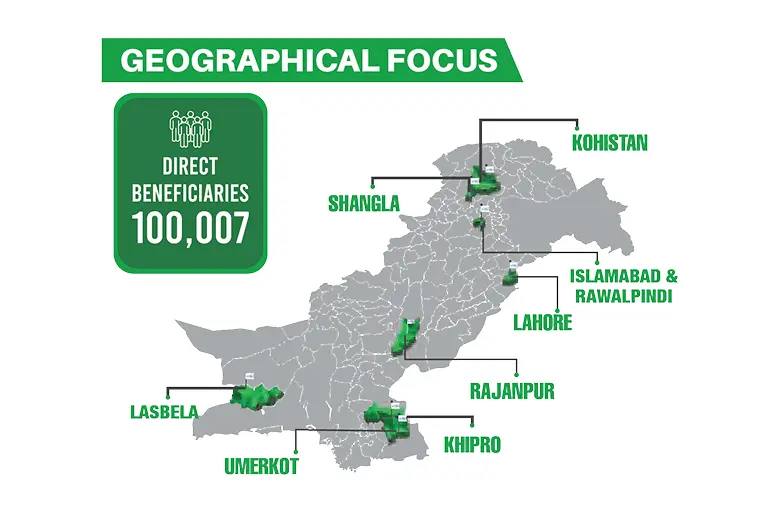 Promoting sustainable climate solutions by supporting initiatives that advance adaptive and low-impact practices to help Pakistan mitigate and adapt to climate change.